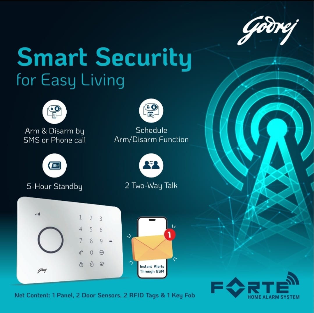 Godrej Wireless Security Alarm System, Secure you home in smarter way, Forte Security Alarm Kit with Mobile app and wireless connectivity.