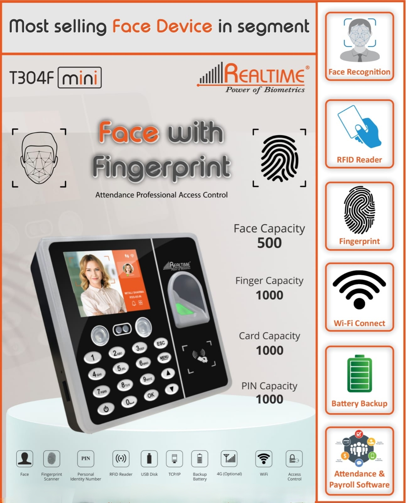 Realtime T304F Mini Time & Attendance (Face)